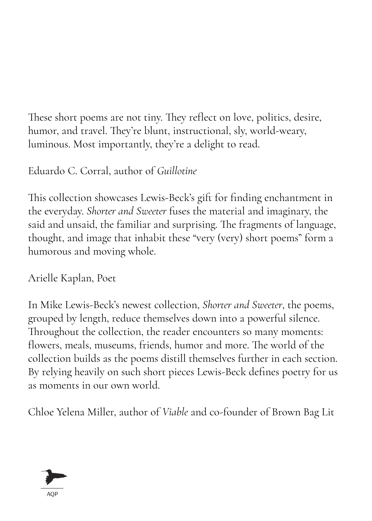 AQP is thrilled to share our newest collection, Dirt Bird, by Autumn McClintock. We want to thank everyone who has made another publication possible by donating to AQP during our 2021 fundraiser.