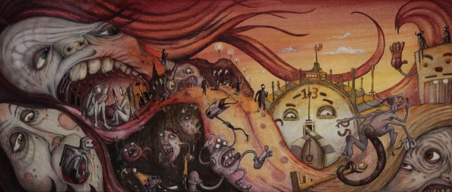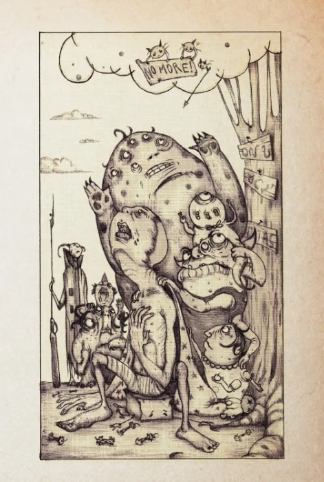 Cockroach belch echos through hollow clouds.