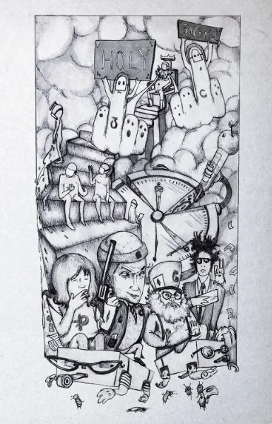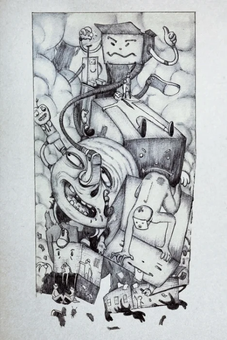 ThoughtS is an artistic diary, an intimate yet over exposed interpretation of society, culture and technology. It is a surreal, imaginative, stream of conscious narrative amplified by dual versions of each illustration presented side by side, with corresponding Spanish and English interpretations of the poetry and prose. -JM